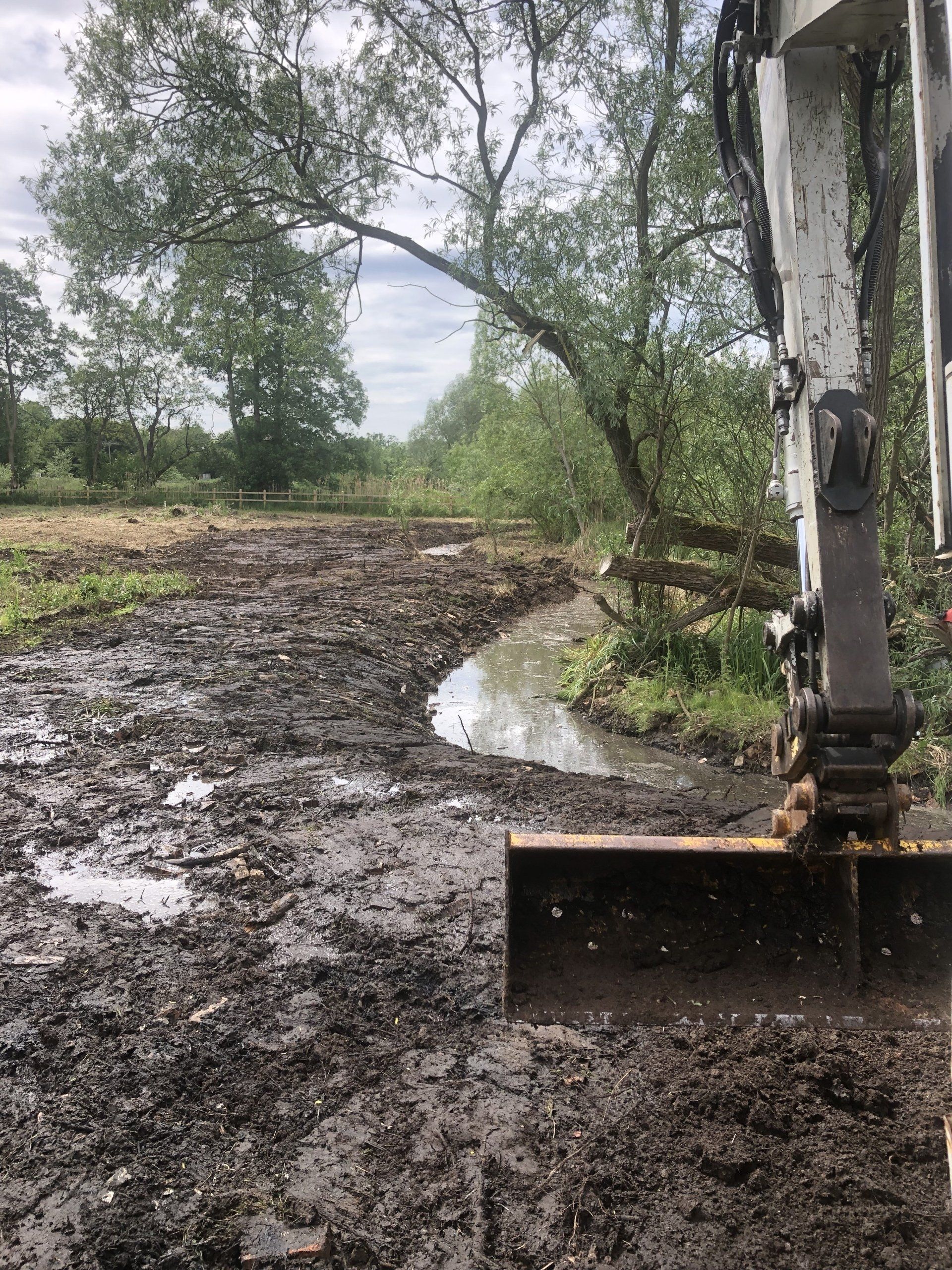 Reed removal from Trout fishing lake to reduce the breeding grounds for Argulus lice.