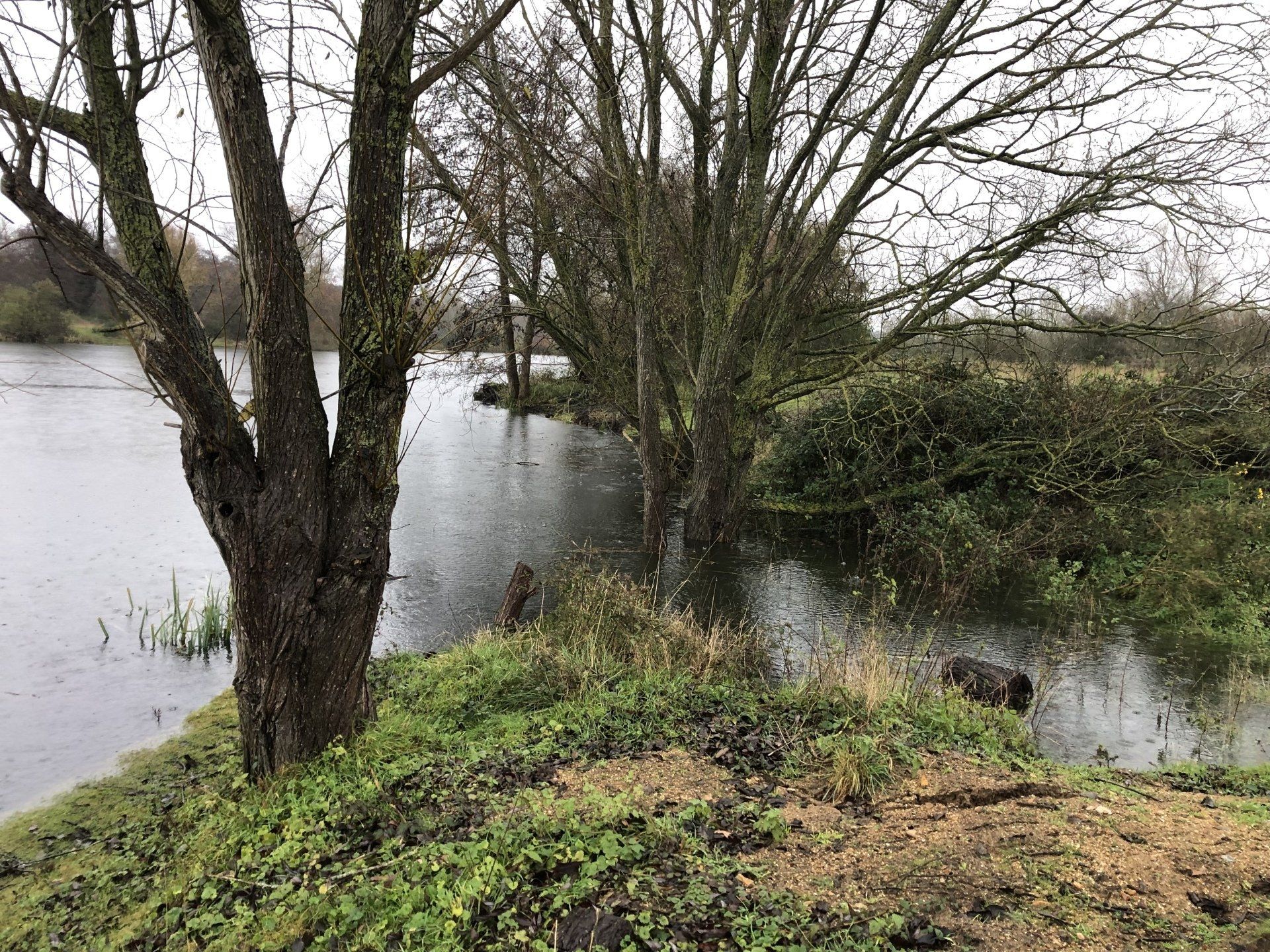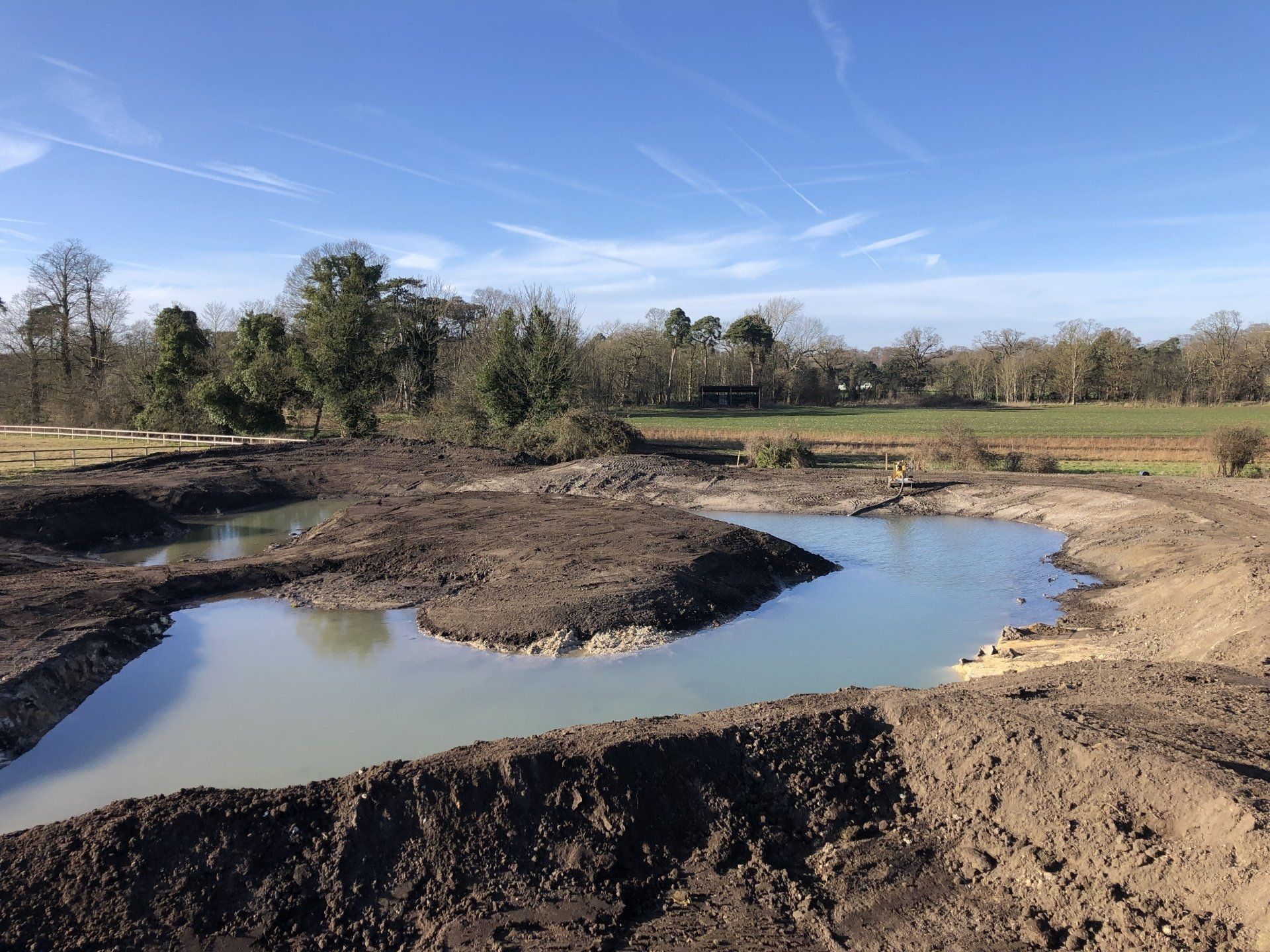 Spring fed lake created in fen edge land, for wildlife. With sheltered island and cliffs for Sand Martin nesting. Surroundings landscaped, sown with wildflowers and native trees planted.
