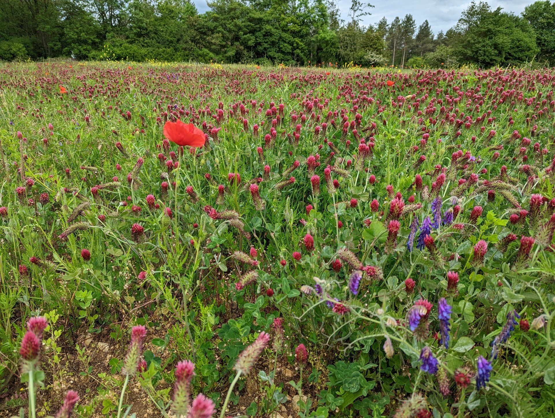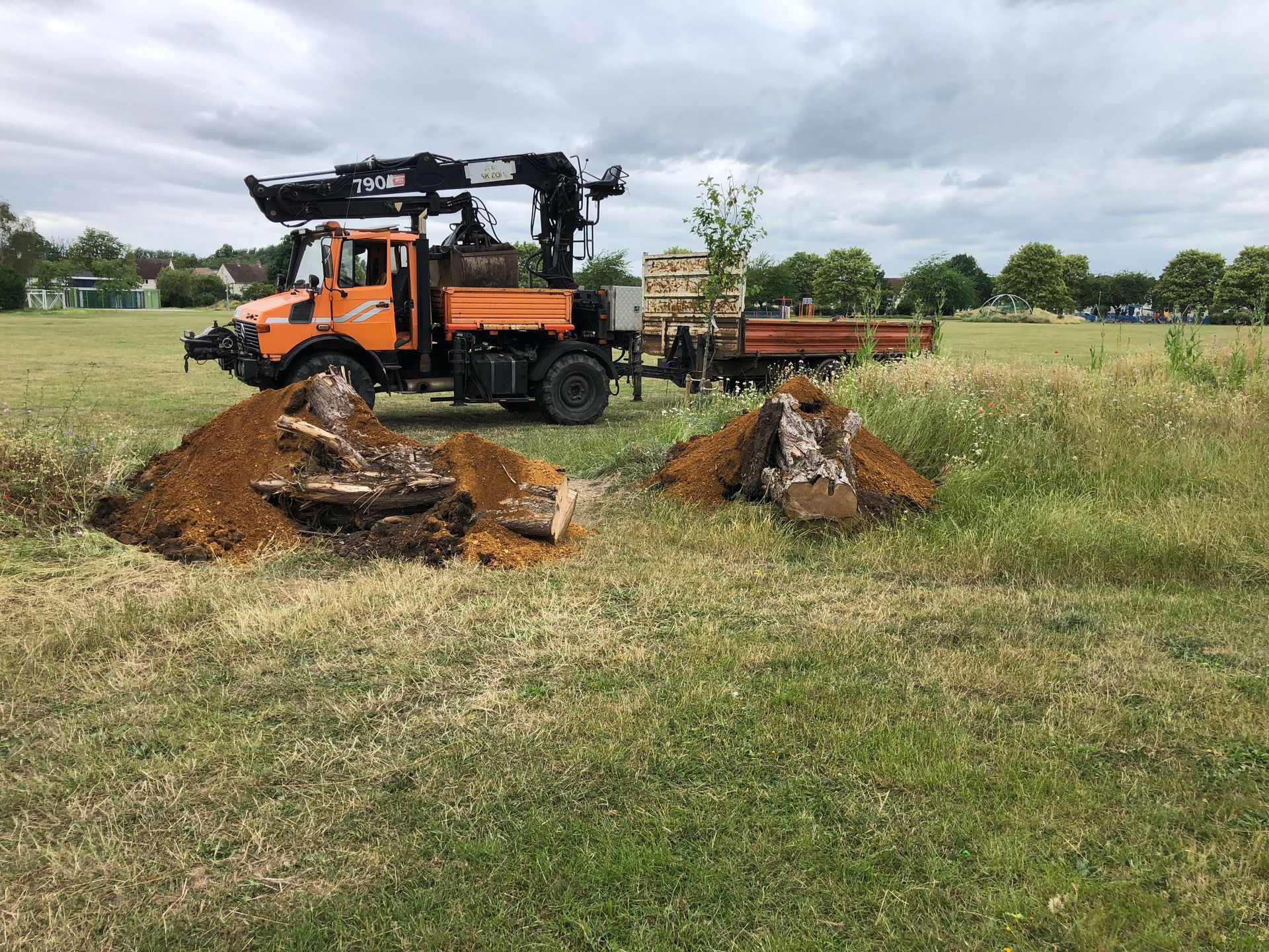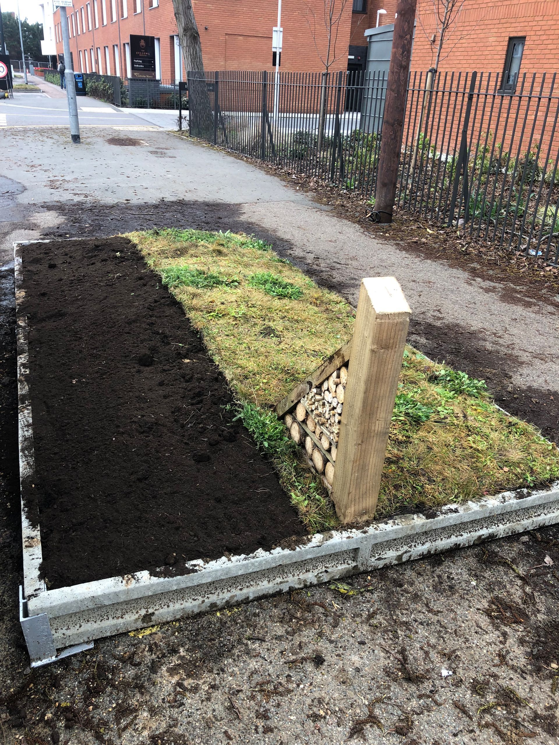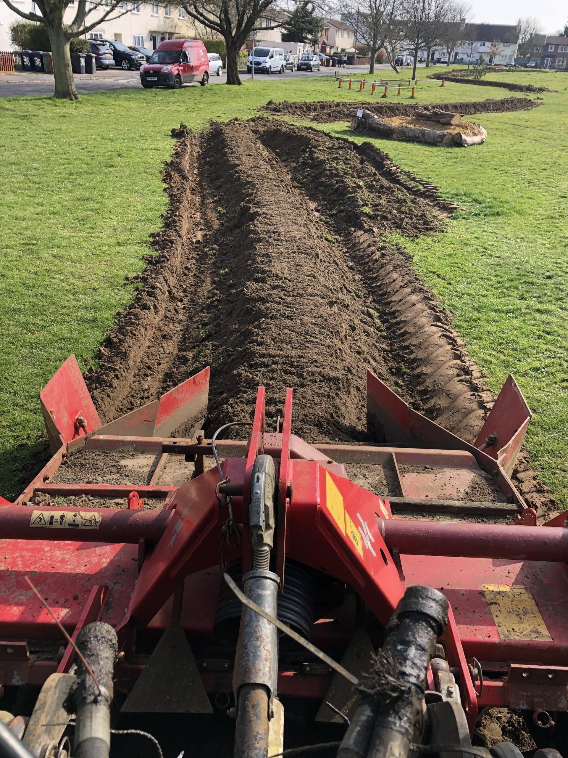 Mechanically created beetle bank through City Parks, sown with natice wild flower mix. Linking existing trees and hedges with bee banks, to create biodiverse corridors.